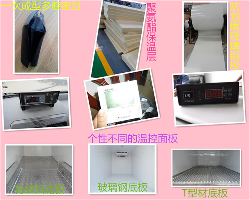 廂板材質(zhì):內(nèi)外壁板選用國內(nèi)優(yōu)質(zhì)的機(jī)制2.2mm玻璃鋼;中間保溫材料選用厚進(jìn)口聚氨酯; 廂體厚度80mm 門厚度80mm;底板上面整體鋁花紋板,下面彩鋼板,中間進(jìn)口聚氨酯;